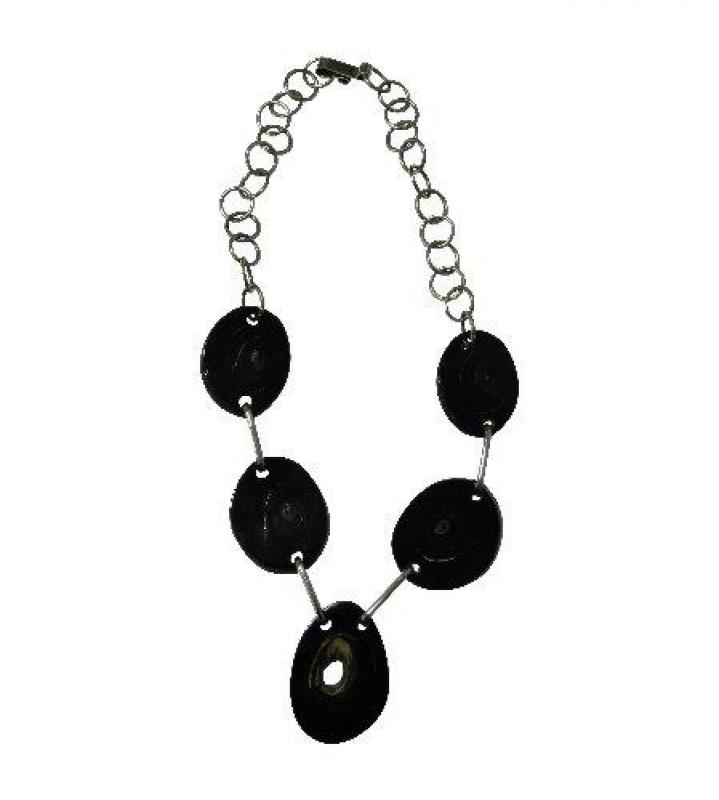 Pendant Necklace In Nickel Silver And Five Slice Horn Of Deer