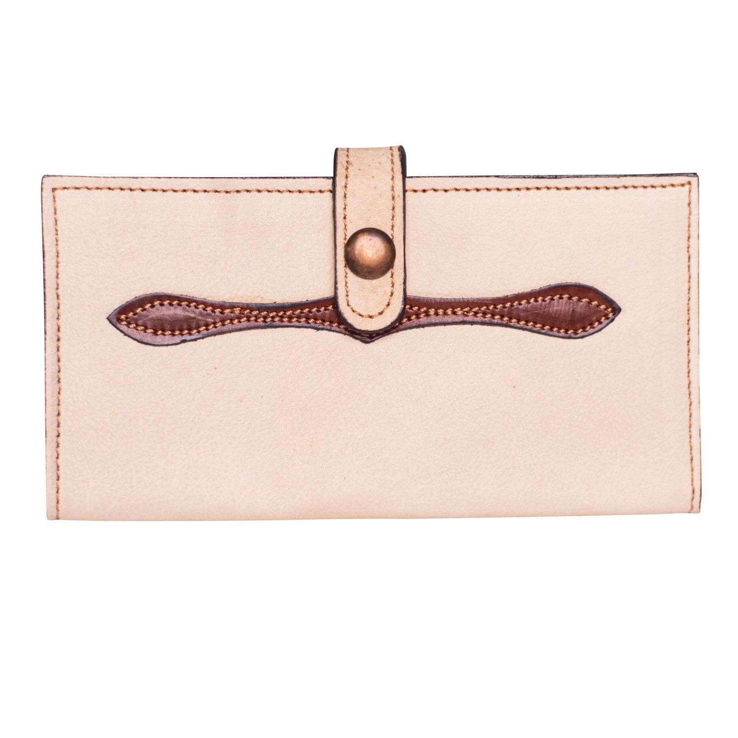 Billetera De Dama De Cuero Crudo Con Detalle En Cuero Vaqueta