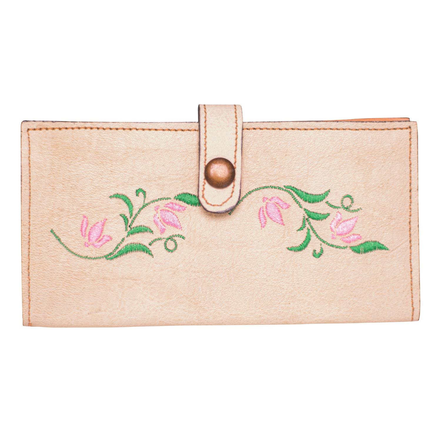 Billetera De Dama De Cuero Crudo Con Diseño En Flores