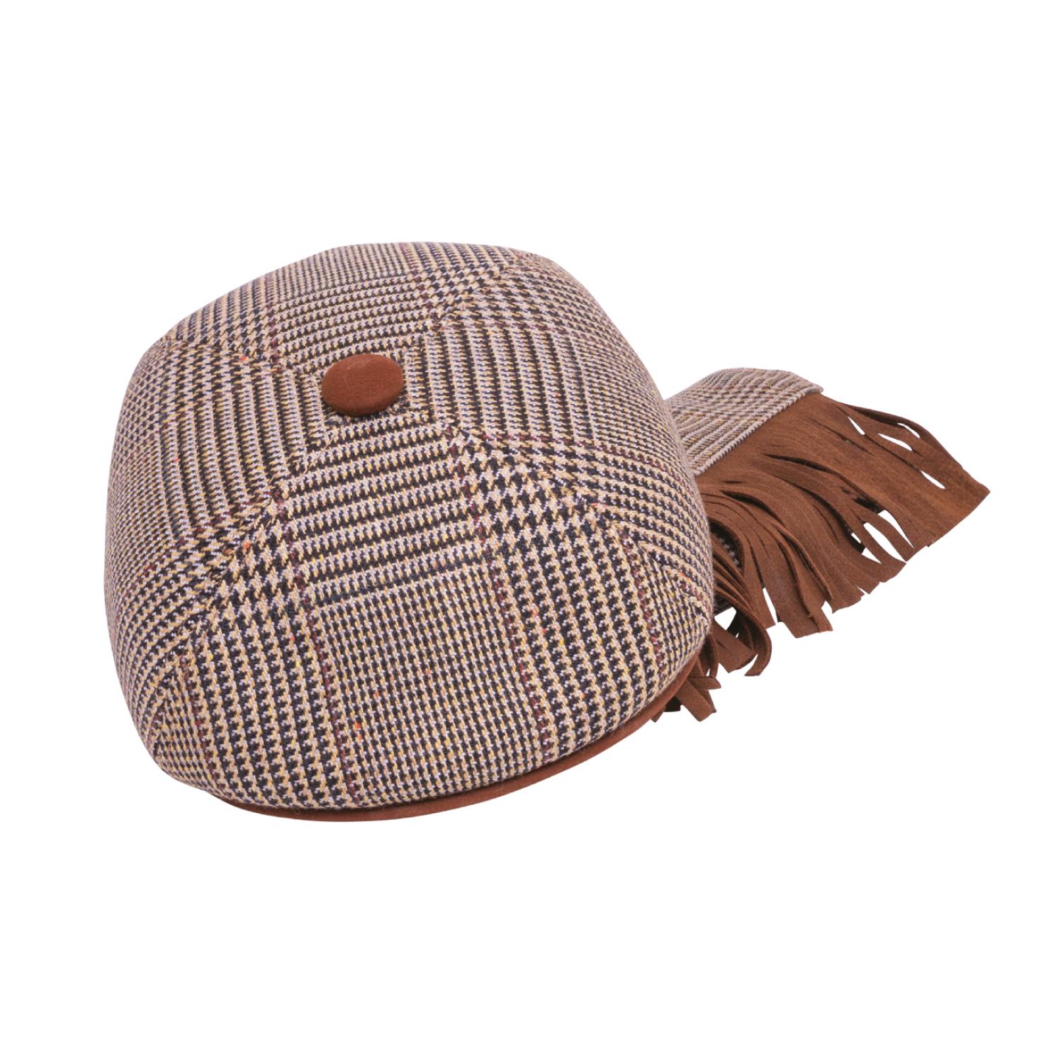 Boina Pamplona Tipo Inglesa y Bufanda Fina De Lana Escocesa Con Detalles En Cuero