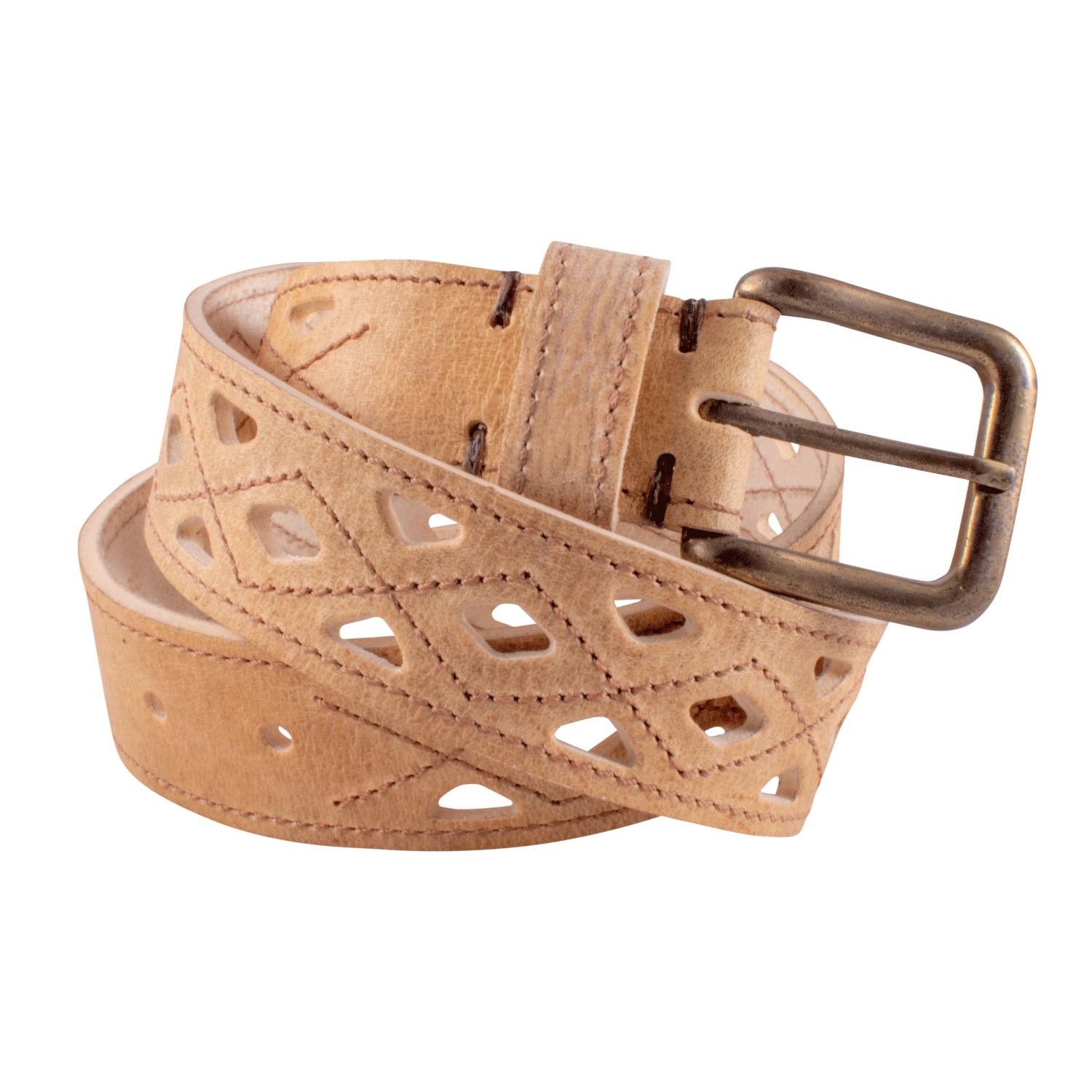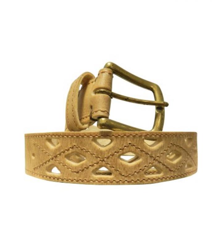 Cinto De Cuero Crudo Mini Rombos Tejido Con Hilo En Centro Y Borde