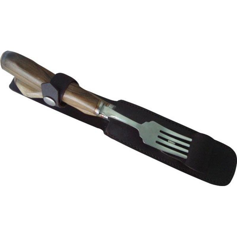 SET KNIFE AND FORK IN STAINLESS STEEL SCHMIEDEN IN 5 REGINAL WITH LEATHER SHEATH