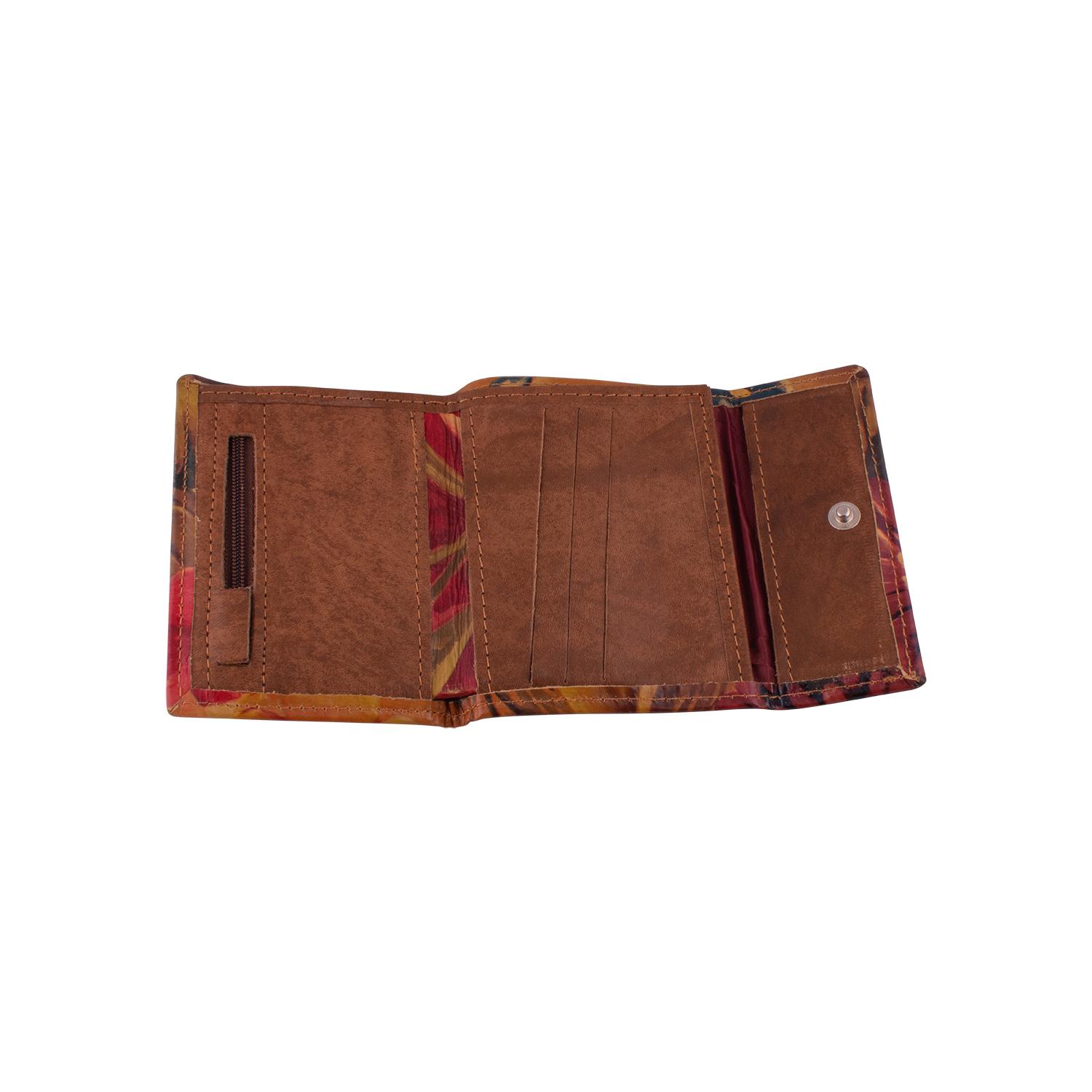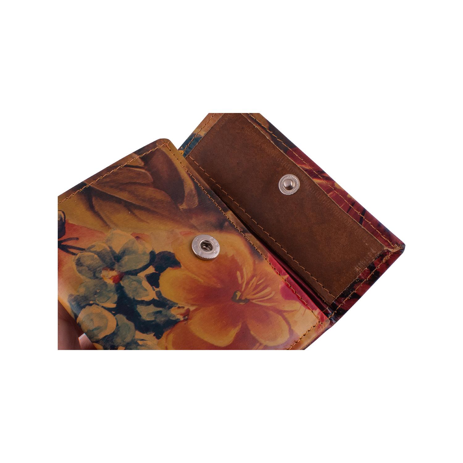 Triple Waller In Leather Decored With Flowers